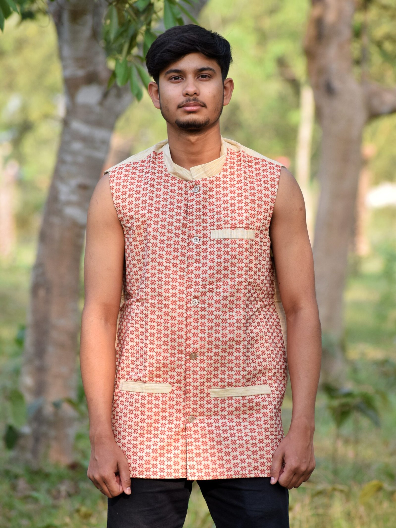 WaistCoat -Men – Assamese Gamosa Design with Dahibuta