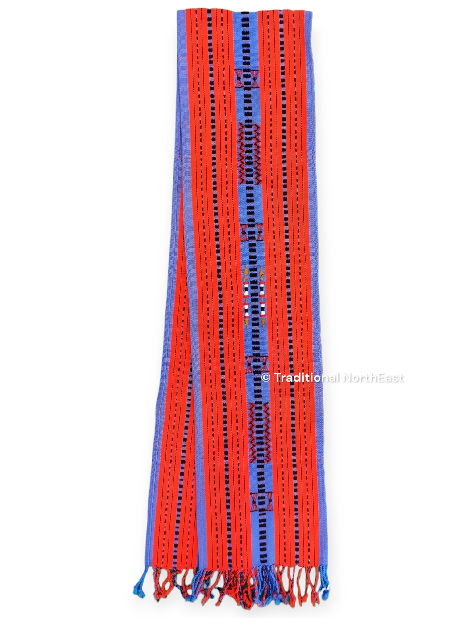 It is a traditional muffler of the Naga tribes.Each symbol engraved there has its own meaning. These mufflers are very authentic items handcrafted and handwoven by local artisans in Nagaland. Wrapped around the neck or draped over the shoulder, it is woven properly and then hand-embellished with embroidery to give it a unique comfort and feel.