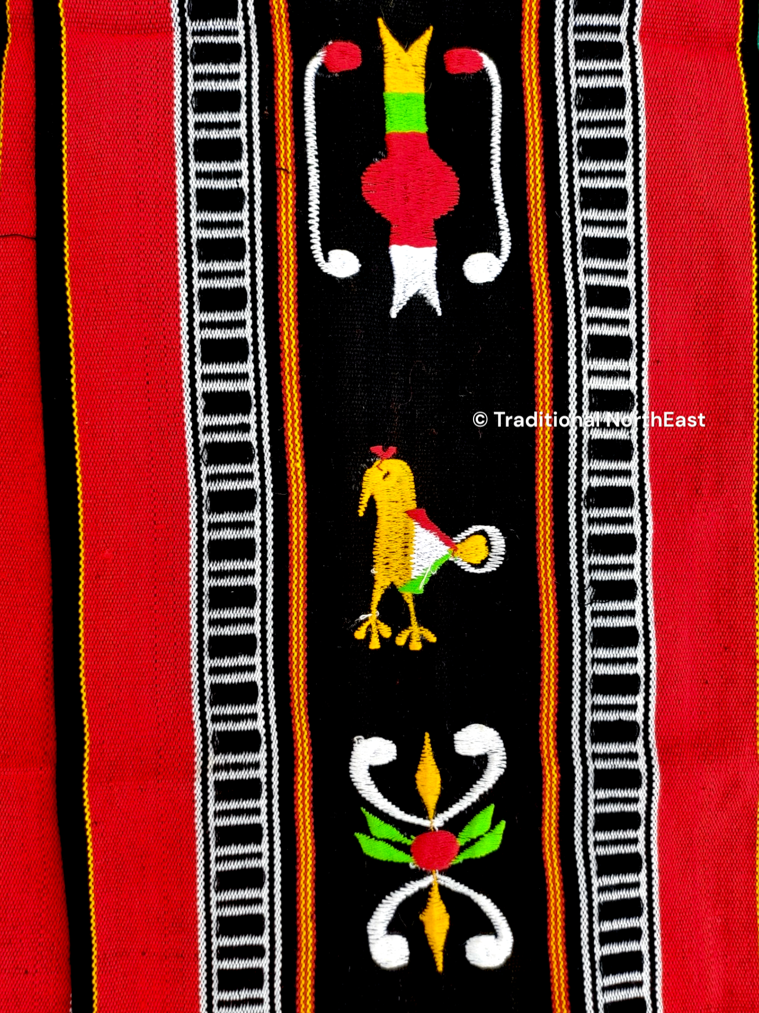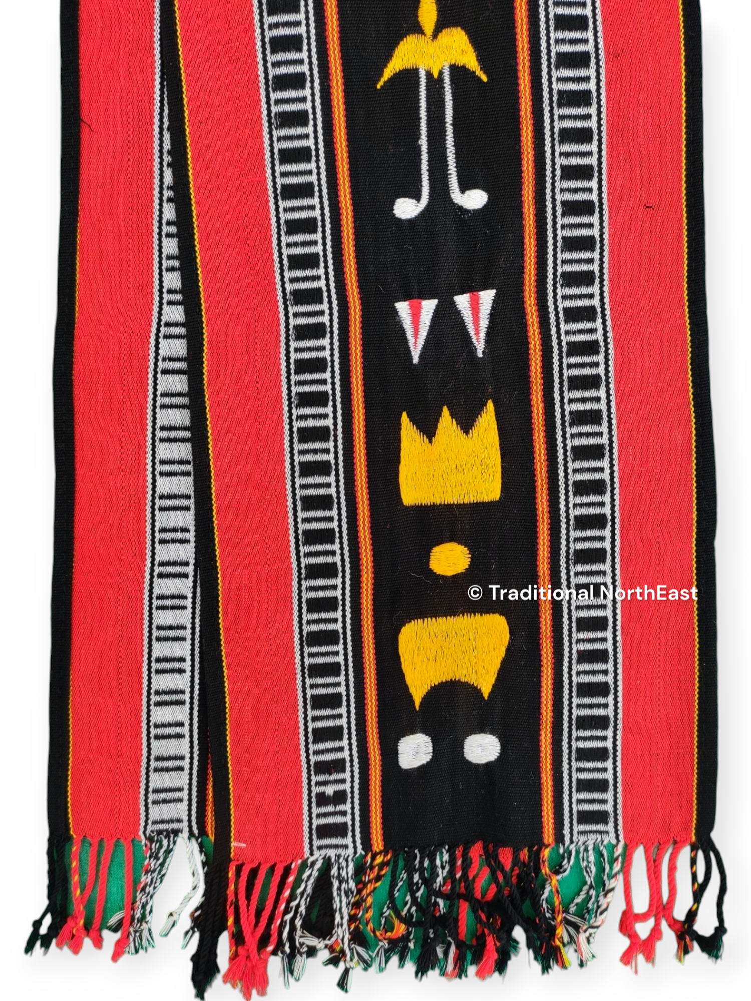 It is a traditional muffler of the Naga tribes. Each symbol engraved there has its own meaning. These mufflers are very authentic items handcrafted and handwoven by local artisans in Nagaland. Wrapped around the neck or draped over the shoulder, it is woven properly and then hand-embellished with embroidery to give it a unique comfort and feel.