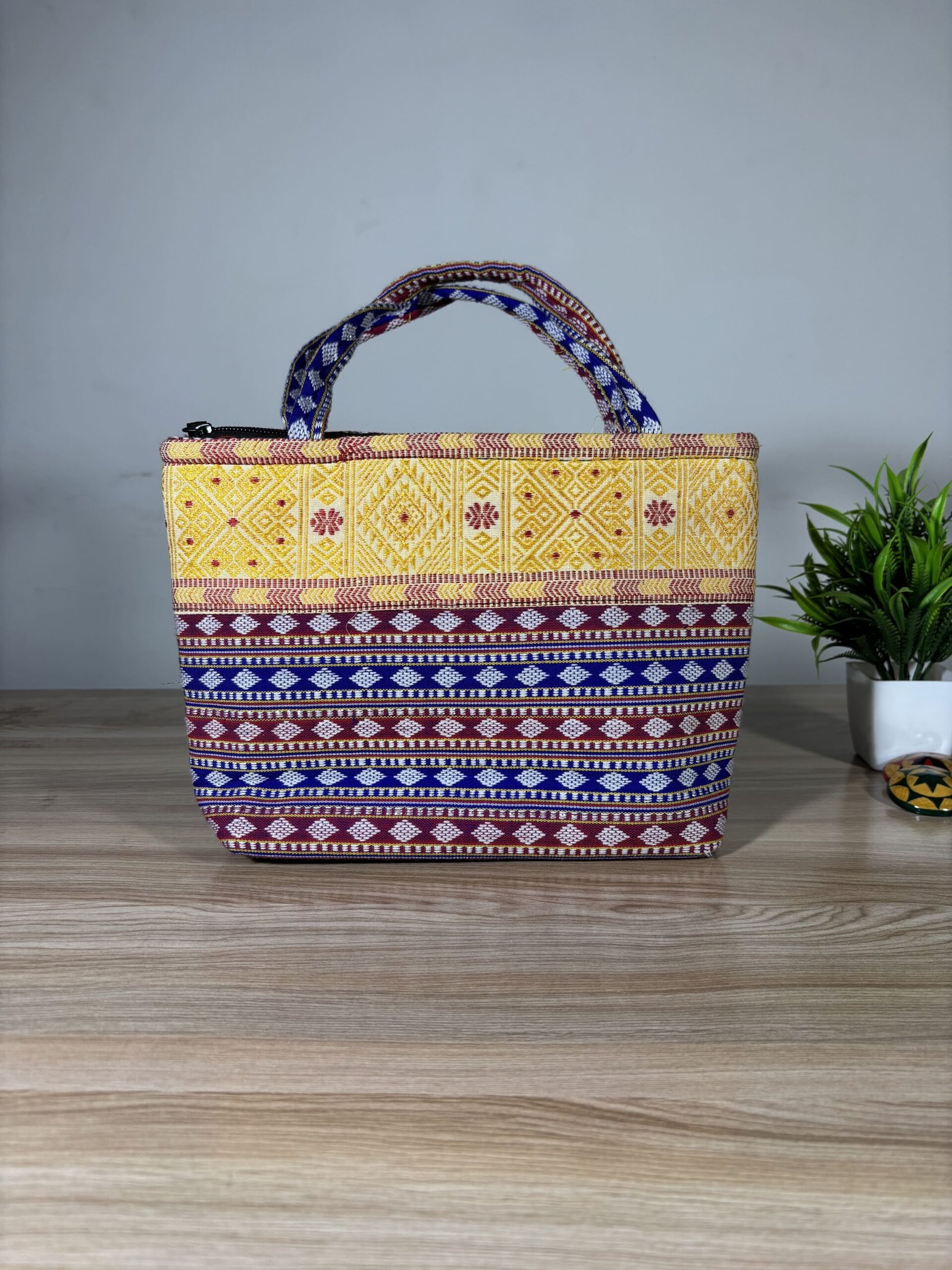 It’s a Traditional Hand Bag. As it’s completely handmade so each piece is unique and similar, some pieces may little bit differnt from photos. It has been designed by tribal artisans of Assam.